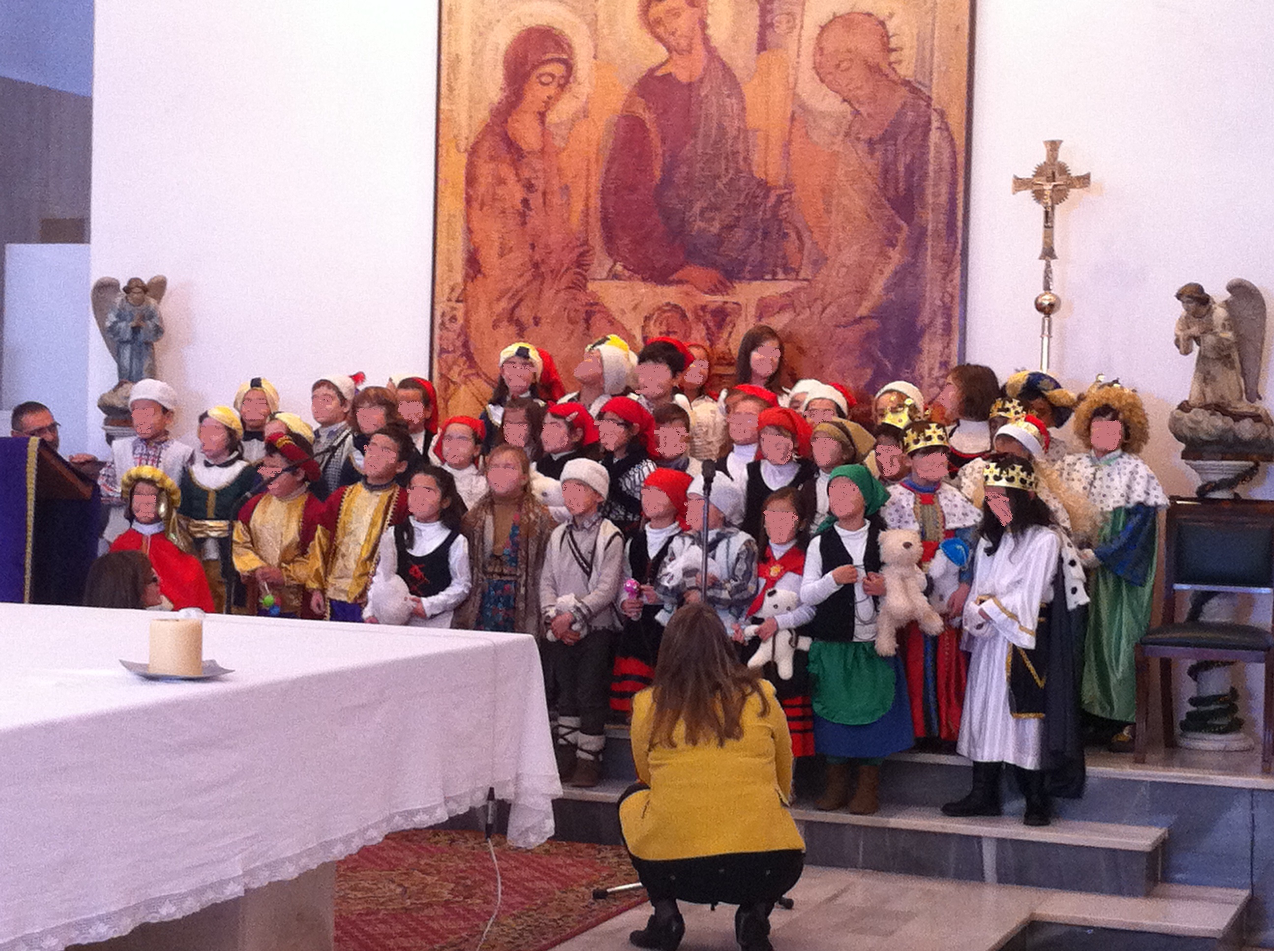 El pasado día 20 nuestro colegio parroquial tuvo la fiesta de Navidad. Previamente se habían dividido para ir a cantar villancicos a nuestros mayores en las residencias de: Geron, Hijas de la Caridad y Hnas de la Cruz. Finalmente celebramos en la Parroquia una gran fiesta Navideña.